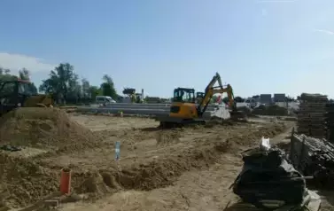 Wykonywane są roboty budowlane w ramach zadania pn. Budowa kompleksu sportowego Zespołu Szkół Technicznych im. E. Kwiatkowskiego przy ul. Nowy Świat – budowa boisk wielofunkcyjnych.