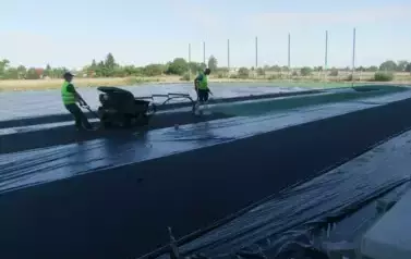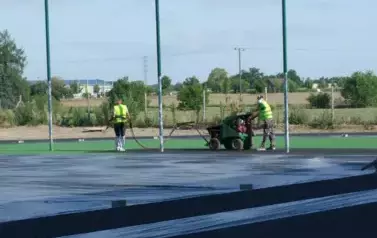 Wykonano warstwę poliuretanową boiska zewnętrznego i bieżni, obecnie realizowany jest natrysk kolorów. Trwają też przygotowania do wykonania drenażu przy 2 boiskach wielofunkcyjnych.