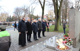 Po nabożeństwie przedstawiciele wojewódzkich, powiatowych i gminnych władz samorządowych, reprezentanci organizacji, szkół i instytucji oraz mieszkańcy przeszli przed pomnik Wdzięczności przy ul. 3 Maja. Przy akompaniamencie Grodziskiej Orkiestry Dętej oraz warcie grodziskich harcerzy, złożono wiązanki kwiatów i zapalono znicze.